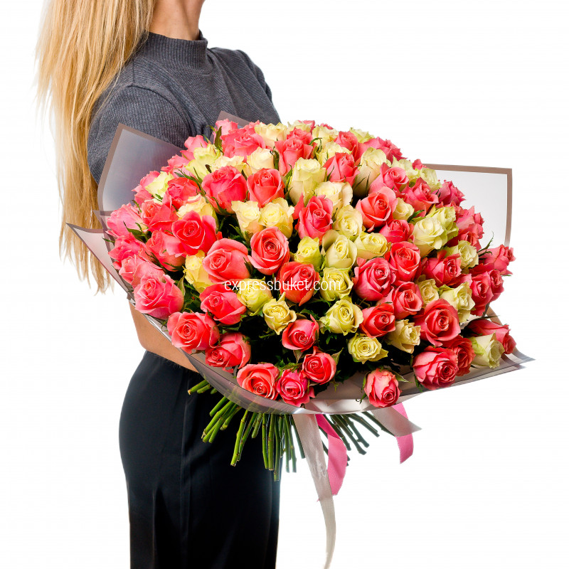 Букет из наших фирменных роз. Мы их закупаем напрямую из Кении с плантаций. Эти розы хоть и не большие но очень необычные и получатели восхищаются их красотой.